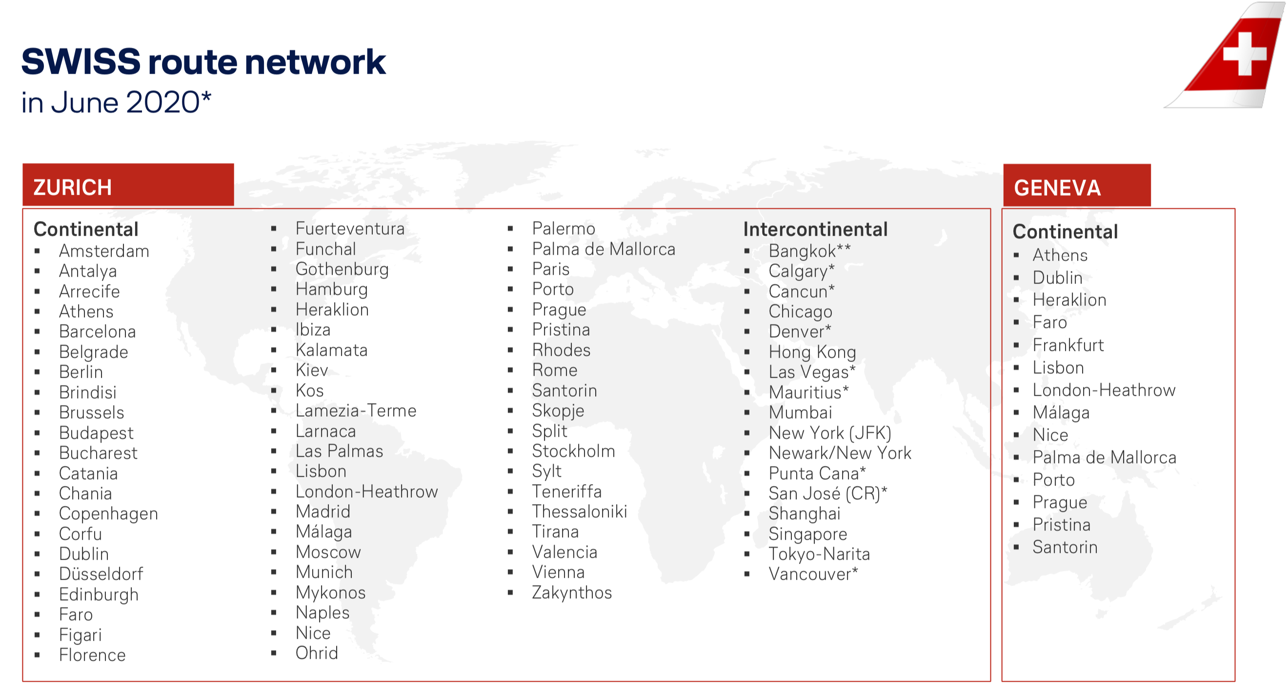 Toronto – Zurich 3 weekly 787-9 (4 weekly from 07JUN20, 5 weekly from 02JUL20, 1 daily 400-seater 777-300ER from 01AUG20)