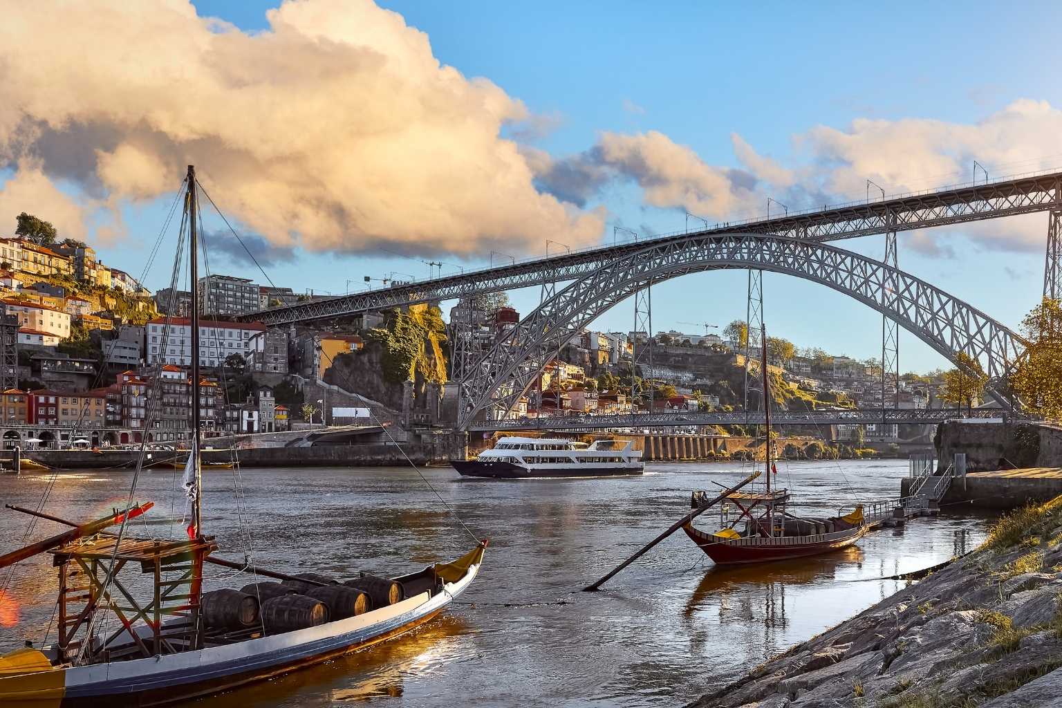One of the city’s highlights is the Dom Luís I Bridge, which offers some of the best views of Porto’s skyline and the Douro River. Visitors can also ride traditional riverboats or stroll through narrow streets filled with historic buildings and tiled façades.