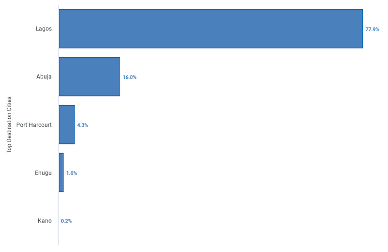 Based on last year’s industry data, the chart below highlights the most popular departure cities for flights to Nigeria from the US. This information can help you plan your journey more effectively by showing you where the majority of travelers are flying from, ensuring you choose convenient and well-serviced departure points.
