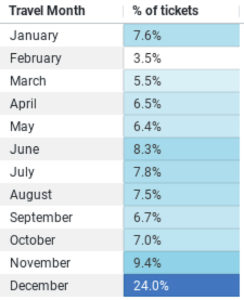 The chart below shows the percentage of flights sold to travelers’ top destinations based on last year’s industry data. We have also added popular cities that are well worth visiting.