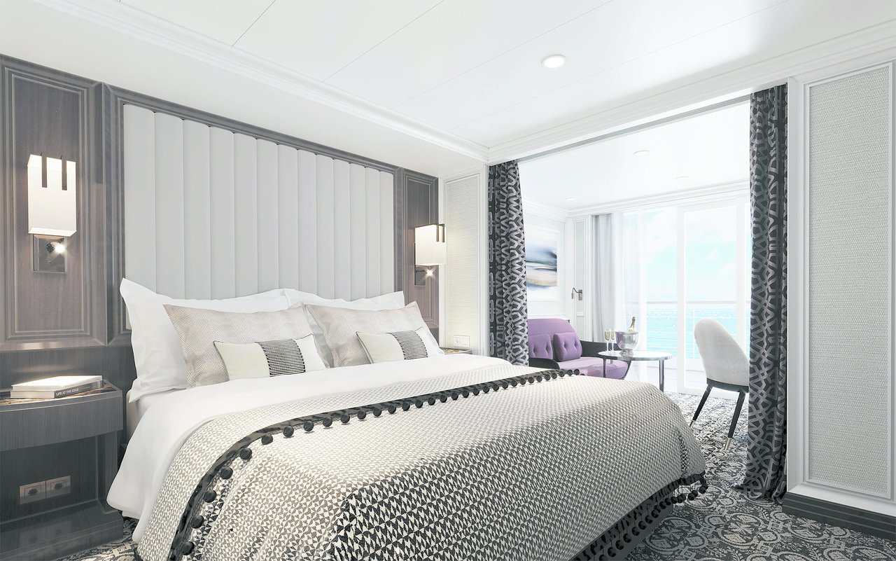 The Seven Seas Splendor luxury cruise ship has room for up to 746 guests who are catered to by 548 crew members. So, you can be certain that you will be well-treated and attended to. The ship has suites ranging from the moderately-sized Veranda Suite at 93.5 sq. feet to the 1354 sq. Feet Regent Suite.